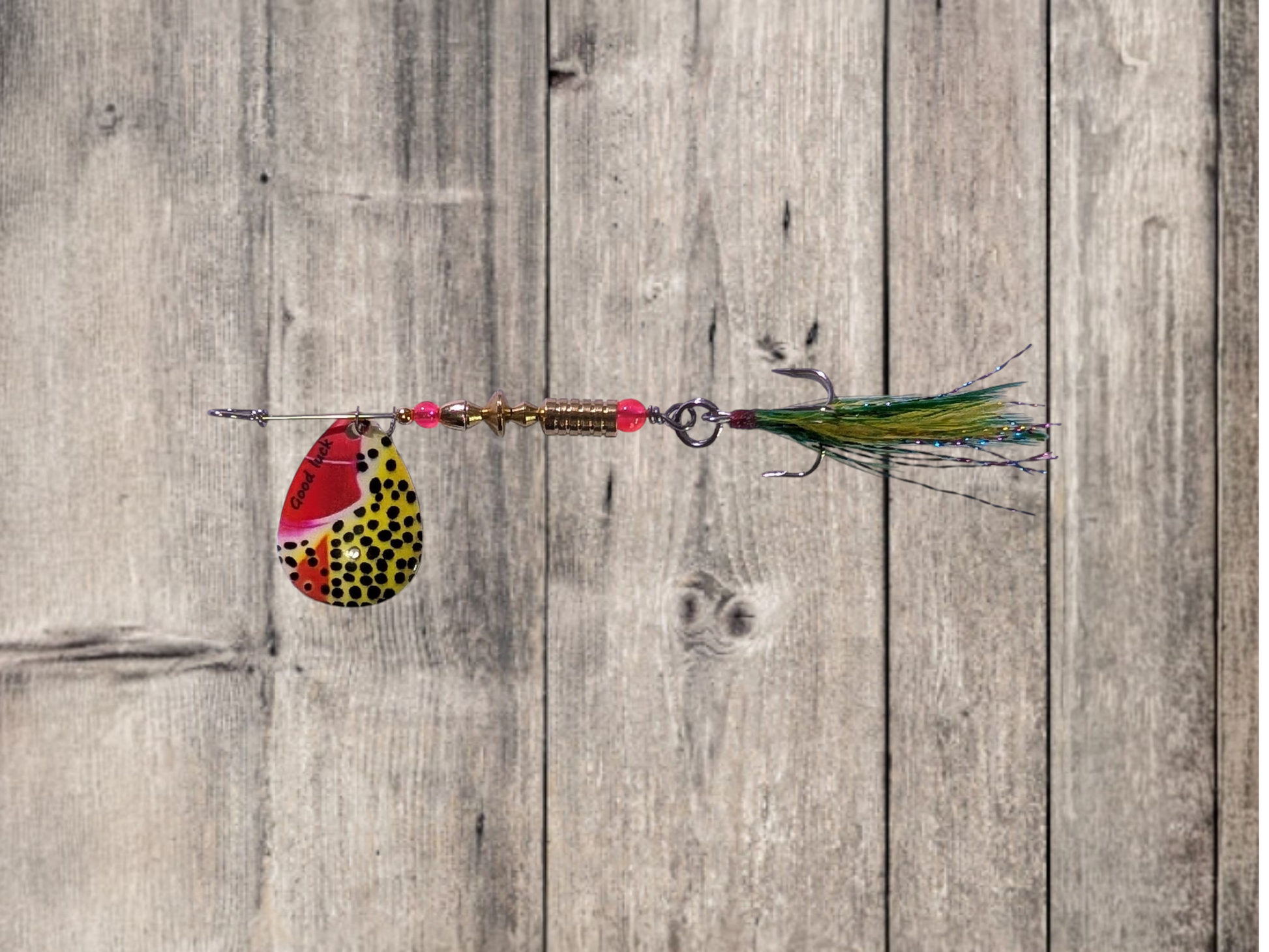 #3 Brass French Blade Spinner Yellow and Red with Black dots